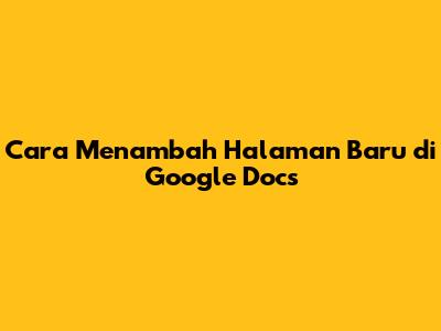 Cara Menambah Halaman Baru Di Google Docs