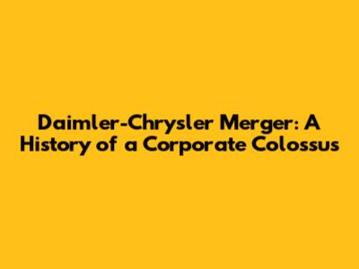 Daimler-Chrysler Merger: A History Of A Corporate Colossus