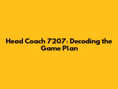 Head Coach 7207: Decoding The Game Plan