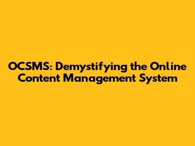 OCSMS: The Ultimate Guide For Beginners