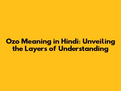 Ozo Meaning In Hindi: Exploring The Depths And Nuances