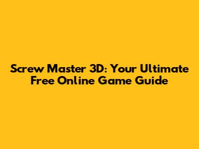 Screw Master 3D: Your Ultimate Free Online Game Guide