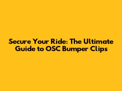 Secure Your Ride: The Ultimate Guide To OSC Bumper Clips