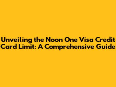 Unveiling The Noon One Visa Credit Card Limit: A Comprehensive Guide