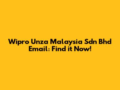 Wipro Unza Malaysia Sdn Bhd Email: Find It Now!